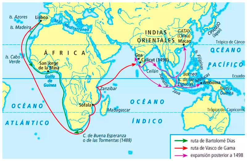 aquí el propósito de los portugueses de buscar la ruta directa hacia