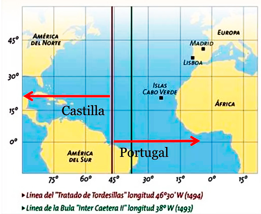 fue modificado en el tratado de Tordesillas, circunstancia que hace