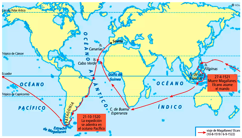 Elcano. Culmina la primera vuelta el mundo que iniciara Magallanes.