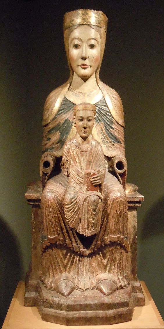 VÍRGENES: Sedentes con larga túnica y el niño en brazos, ajena a su presencia. Pies verticales como colgando. Rostro rígido de ojos grandes y saltones.
