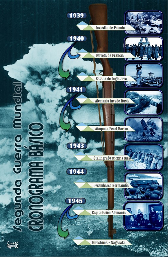 Las crisis se suceden y los conflictos se generalizan. Ante las políticas dubitativas de Reino Unido y Francia, las grandes potencias democráticas, Alemania, Japón e Italia, se funden en un potente bloque militar, el Eje, con el objetivo de alterar el orden establecido tras la primera gran guerra. Chamberlain negocia el apaciguamiento de Hitler y cede ante algunas de sus demandas. Stalin firma el pacto de no agresión germano-soviético que desencadena el ataque alemán sobre Polonia el 1 de septiembre de 1939. Pocos días después las tropas soviéticas ocupan la zona oriental de ese territorio. La guerra ha comenzado. Una guerra que salpica de una manera u otra a casi todos los países del mundo con un poder destructivo desconocido hasta la fecha. El armamento utilizado, el enconamiento de los contendientes y las políticas de aniquilación sistemática de personas en función de ideología, etnia o religión, provoca el mayor número de víctimas de la historia de la humanidad con incidencia especial entre la población civil. Inaugura de este modo uno de los efectos más trágicos de las contiendas modernas.