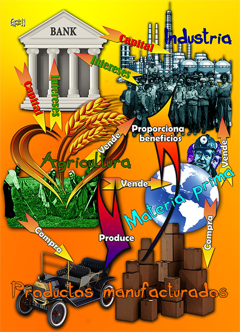Pero este crecimiento presenta puntos débiles en su estructura. El sistema económico capitalista que lo posibilita se basa en la mutua confianza y el intercambio. Gracias a los préstamos se levantan industrias que transforman materias primas en manufacturas con el concurso de millares de obreros. La producción resultante podrá ser adquirida gracias a los ingresos procedentes de la venta de quienes proporcionaron la materia prima y de los salarios de la mano de obra que participó en su transformación. Si el trabajador percibe menos de lo que constituye una porción equilibrada sobre los dividendos empresariales o caen los precios de los productos básicos primeros debido a la ley de la oferta y la demandad o a la especulación, el equilibrio se rompe. No hay mercado que absorba los stock ni, en consecuencia, beneficios suficientes para responder a los créditos solicitados. La crisis está servida.