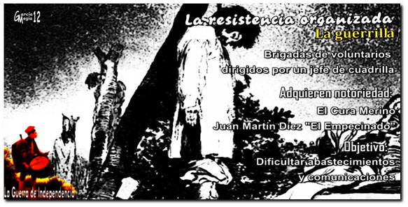 La guerra se plantea en varios escenarios. Por una parte se articulan las guerrillas que son movimientos espontáneos de gente del pueblo que opta por la resistencia armada y se organiza en partidas de voluntarios que, bajo las órdenes de un jefe de cuadrilla, hostigan al ejército enemigo en la retaguardia destruyendo sus abastecimientos. La represión francesa es muy dura y actúa contra la población civil, pero no logra terminar con el espíritu de lucha de los españoles que se mantiene vivo durante toda la contienda.