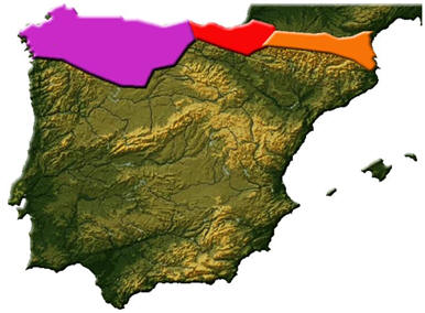 Siglo VIII - Núcleos de resistencia cristiana. De oeste a este: Núcleo Asturiano, Núcleo Navarro y Núcleo Franco Momento islámico: Emirato Dependiente – Emirato Independiente