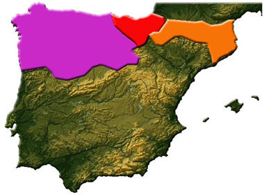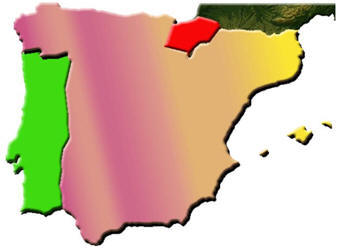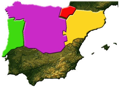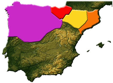 Siglo XIII – Hegemonía cristiana De oeste a este: Portugal, Castilla, Navarra, Corona de Aragón Momento islámico: III Reinos de Taifas – Reino Nazarí de Granada