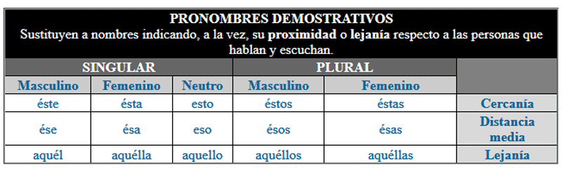 conocidos por el hablante y el oyente. Sustituyen a los nombres y se usan para