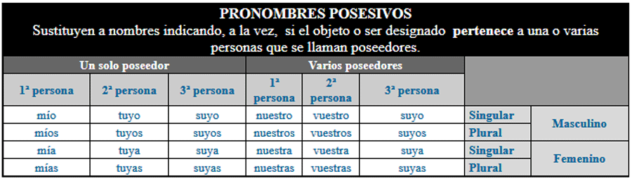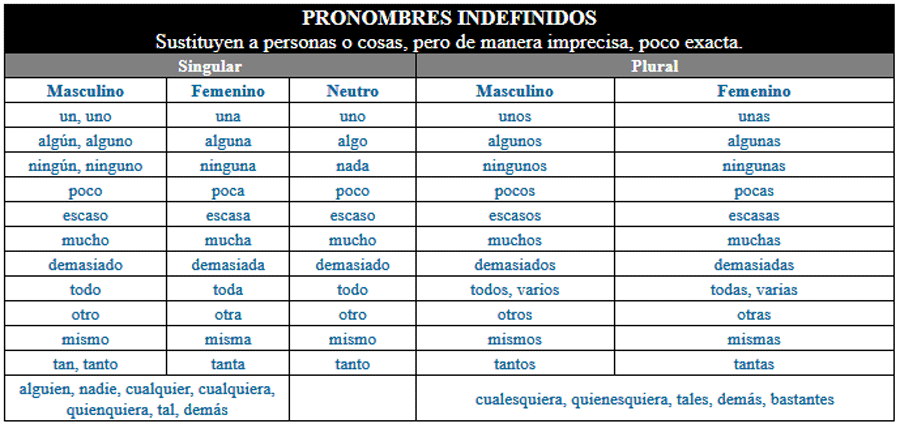 TABLA GENERAL DE PRONOMBRES PERSONALES