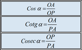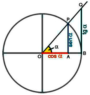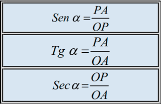 Función trigonométrica: Relación que se estable entre los lados de un triángulo rectángulo que se supone inscrito en una circunferencia.